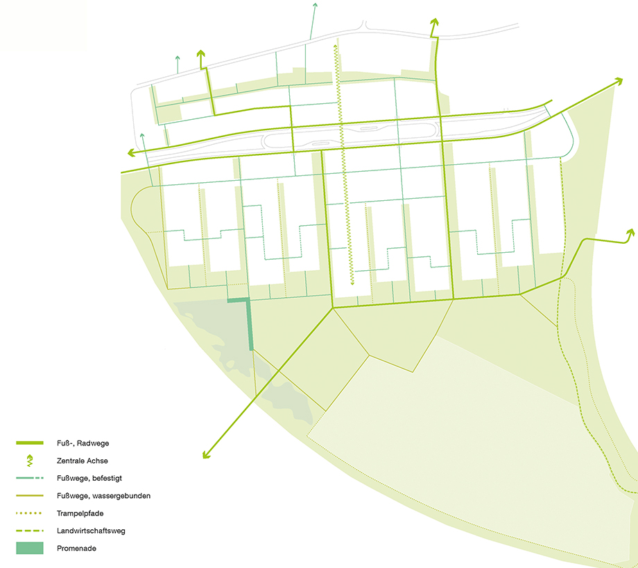 Blick durch den Grünzug im nordwestlichen Teilbereich in Richtung Westen