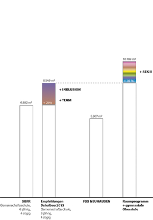 Die Umbrüche der Friedrich-Schiller-Schule sind nicht nur baulicher sondern auch pädagogischer Natur. Die Schulgemeinde hat sich gemeinsam mit dem Schulträger zum Ziel gesetzt, eine zukunftsgerichtete Bildungseinrichtung zu schaffen, in der moderne Lernmethoden einhergehen mit individueller Förderung und gemeinschaftlichem Lernen in einem lernfreundlichen Umfeld. Im Spannungsverhältnis zwischen der „Software“ Pädagogik und der „Hardware“ Gebäude stellt sich auch die Frage nach den räumlichen Rahmenbedingungen.