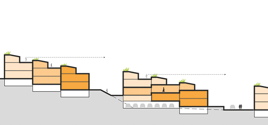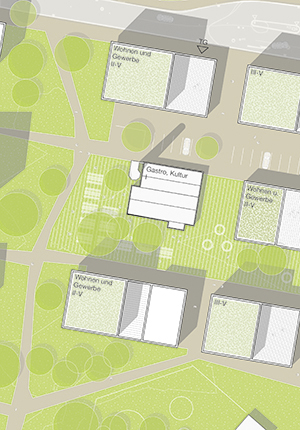 Das Greinerareal wird zu einem urbanen gemischten Quartier mit Gewerbeeinheiten in den unteren Geschossen und zur Neckarstraße und Wohnungen in den oberen Geschossen. Den Hang hinauf entstehen Geschosswohnungsbauten.