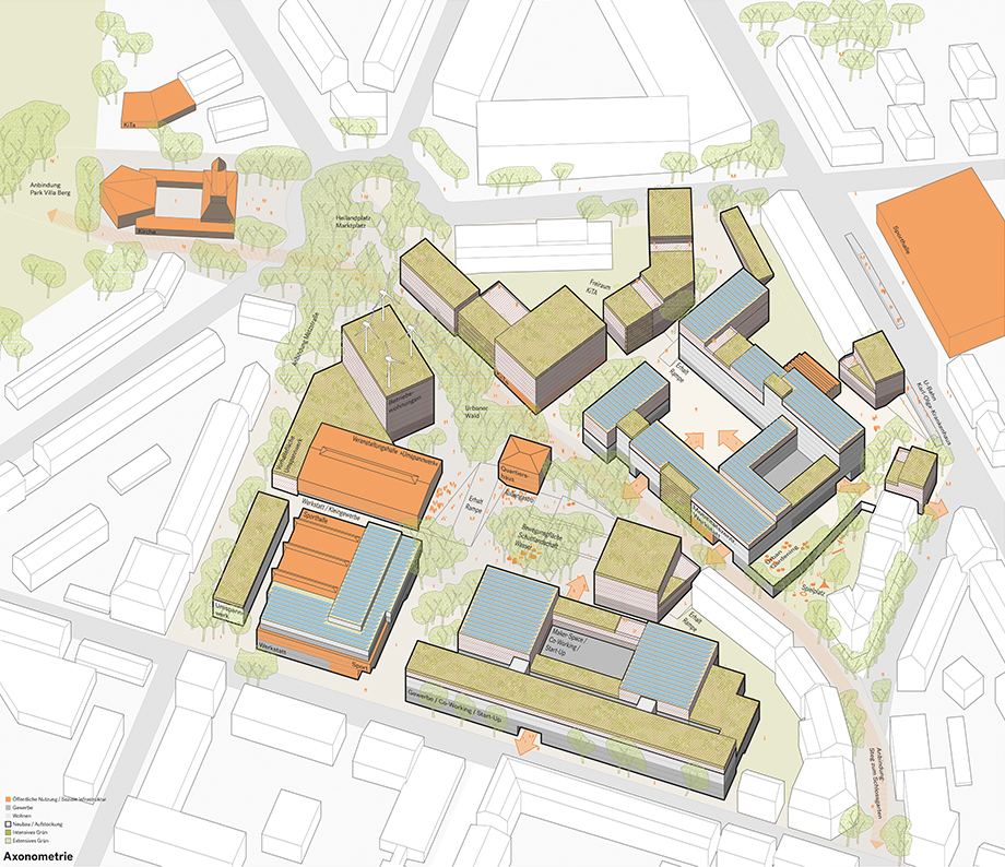 Die sukzessive Entwicklung gestaltet den Übergang von der Gegenwart in die Zukunft des Quartiers und schreibt die Geschichte des Areals fort.