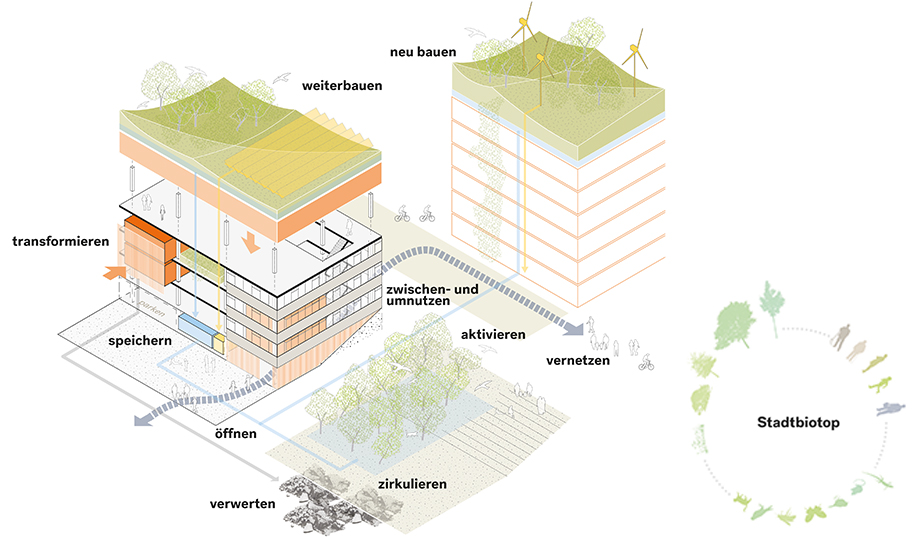 Stuttgarts großer Bedarf an Wohnraum verlangt nach Quartieren hoher Dichte. Parallel gilt es, die Umwelt- und Lebensqualität in der Stadt insgesamt zu verbessern. Dies kann nur gelingen, wenn die Stadt selbst als eine Form von Natur, und damit auch als ein kontinuierlicher Prozess, als ein wachsendes, sich ständig veränderndes System begriffen wird. Im Stadtbiotop Stöckach werden neue Formen des Zusammenlebens und des Umgangs mit Natur ausgelotet, die ökologisch leistungsfähige und erlebbare Grünstrukturen mit einer intensiven baulichen Nutzung vereinen. Ein Schlüsselfaktor dabei ist die verbesserte Integration und Nutzung der Wasserkreisläufe.